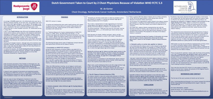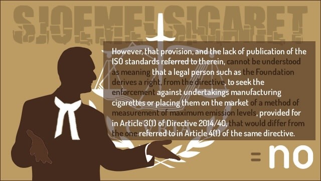 In an advice to the European Court, the Advocate General sees no possibility for legal entities such as Youth Smoking Prevention to require an alternative measurement method for tar, nicotine and carbon monoxide in cigarette smoke. But he does want to discuss whether the existing standard is valid.